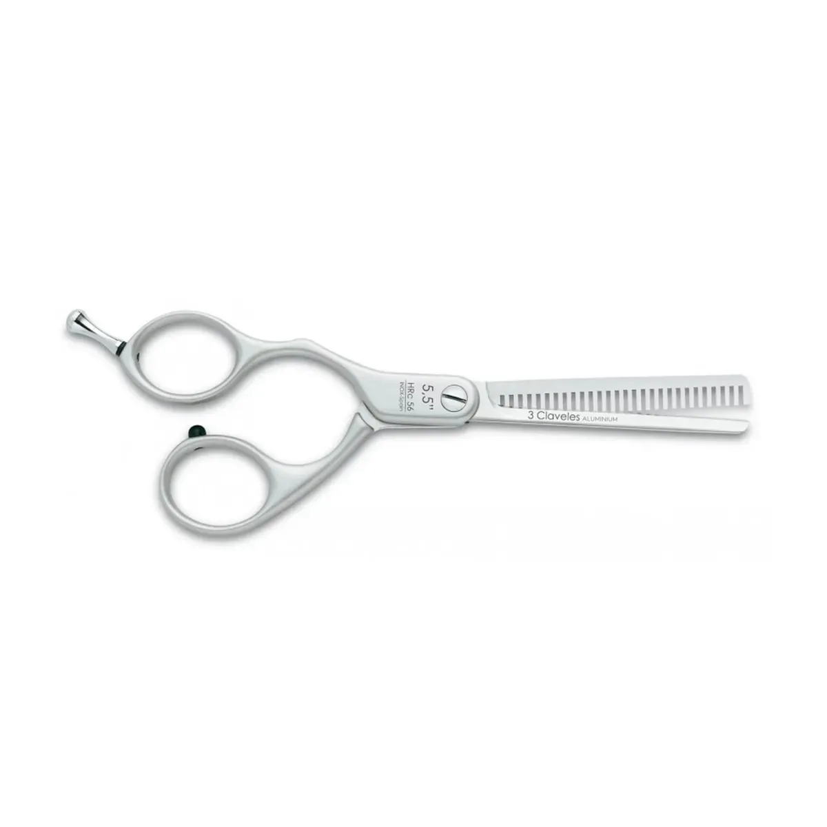 3 Claveles Tijera Esculpir Duraluminium ES28 Zurdos 5.5" ofrece ligereza, precisión y ergonomía exclusiva para zurdos, ideal para texturizar y eliminar volumen con un acabado natural.