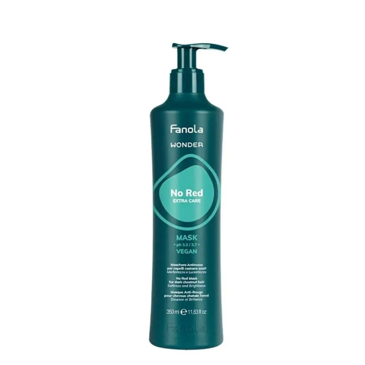 Aplicación: aplicar Fanola Wonder Mask No Red Vegan de medios a puntas; si se desea un efecto calmante en el cuero cabelludo, extender con movimientos suaves en la zona afectada. Evitar aplicar en raíces excesivamente grasosas si ese no es el objetivo.