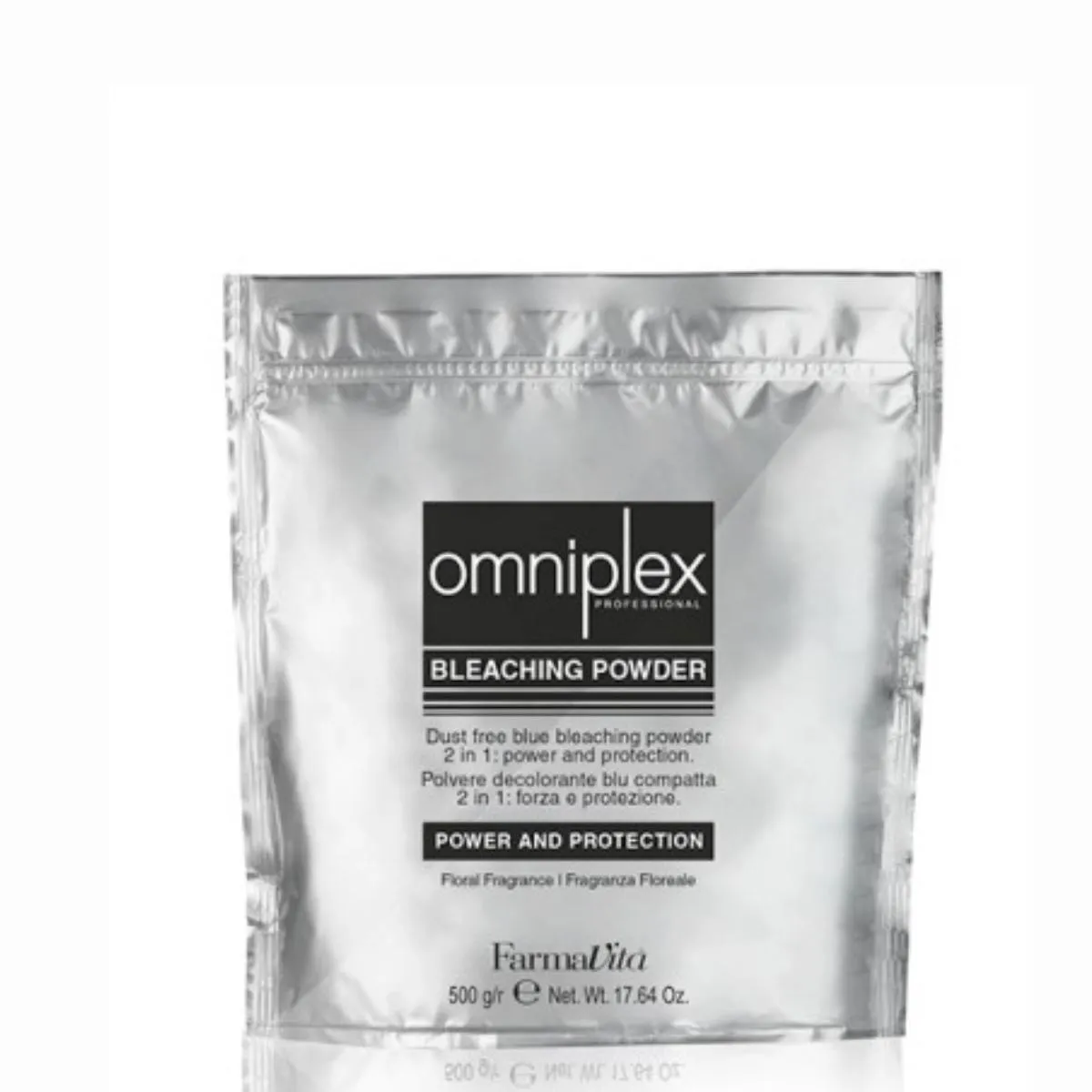 Este decolorante, desarrollado por Farmavita dentro de la línea de Productos de peluqueria, incorpora tecnología Plex para acompañar los servicios técnicos que requieren precisión y estabilidad en la mezcla. La presentación en bolsa de aluminio de 500 g garantiza una óptima conservación del producto.