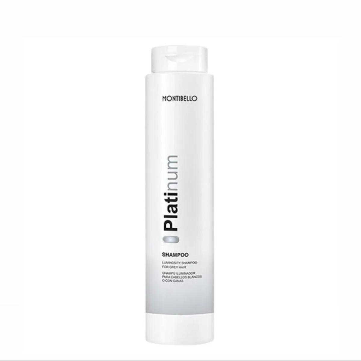Montibello Platinum Champu Cabellos Blancos Limpia suavemente, neutraliza tonos amarillos y aporta brillo nacarado. Cuida la fibra capilar, dejando el cabello blanco luminoso y con tacto sedoso.