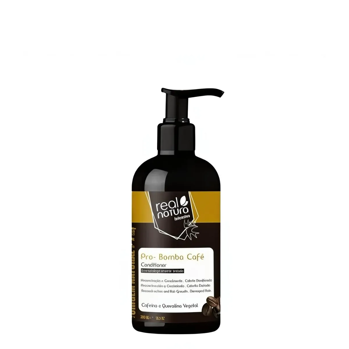 - Presentación comercial: Real Natura Pro-Bomba Café Acondicionador 300ml en envase resistente y fácil de manejar en el baño.