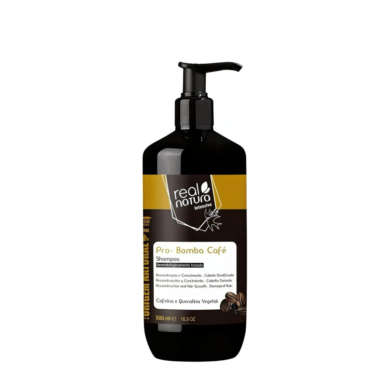 Para recordar el nombre exacto del producto cuando lo busques, piensa en la combinación de reparación profesional y café que incluye Real Natura Pro-Reparacao Bomba Cafe Champú Sin Sal 500ml.