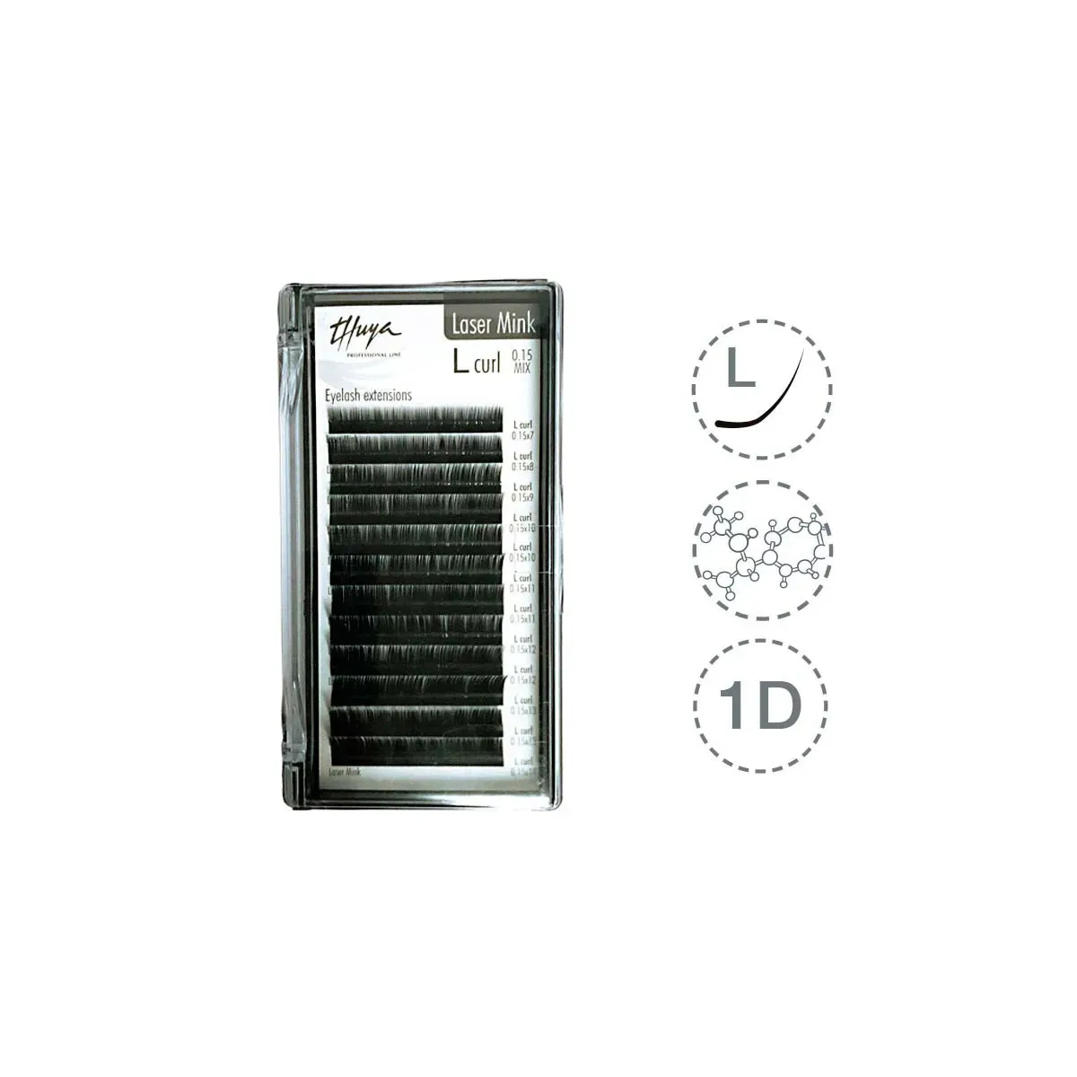 Las extensiones de pestañas Thuya L-Curl Mix Mink Lash aportan un efecto máscara y sofisticación inmediata. Sus fibras de alta calidad garantizan un acabado duradero y natural para una mirada impactante.