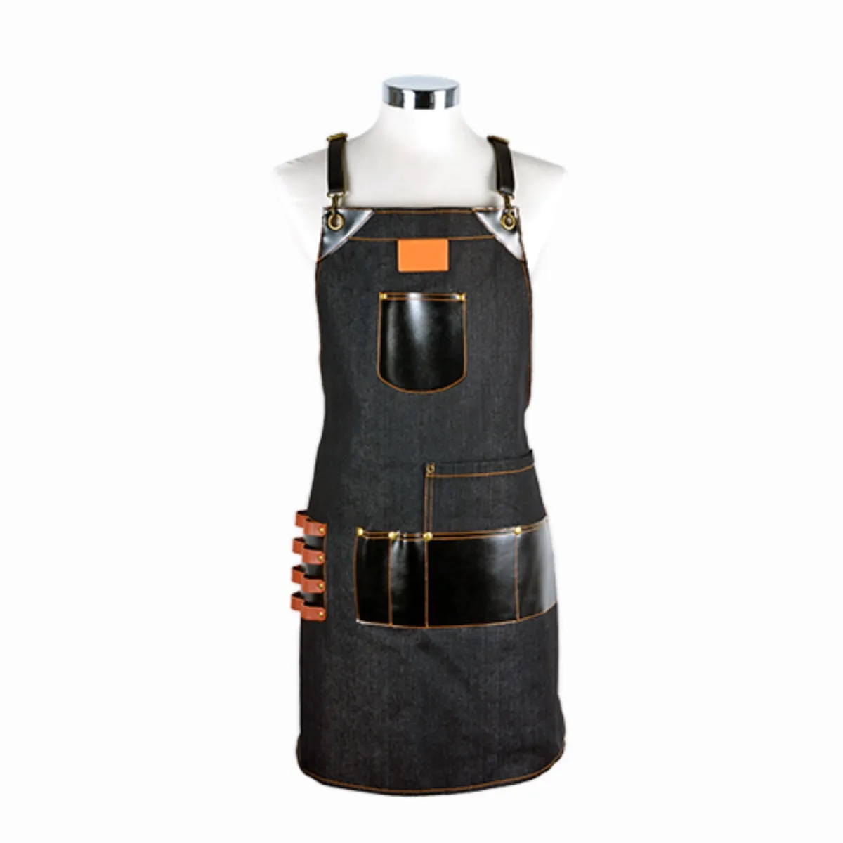 Este delantal presenta un acabado negro de estilo jean que aporta una imagen cuidada y profesional en cabina. Su diseño favorece la libertad de movimientos y ayuda a mantener la ropa protegida frente a cabello, agua y productos habituales del servicio, manteniendo una presencia ordenada durante toda la sesión.