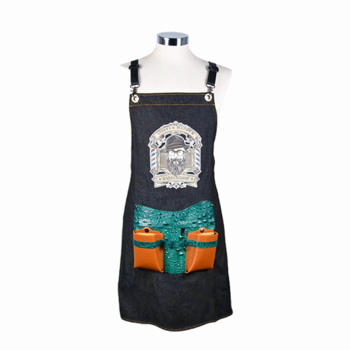 Este delantal presenta una estética cuidada con estructura denim y detalles en relieve 3D que aportan carácter sin restar funcionalidad. El diseño favorece la movilidad del profesional y ayuda a mantener la ropa protegida frente a cabello, agua y productos habituales del servicio, manteniendo una imagen ordenada durante toda la jornada.